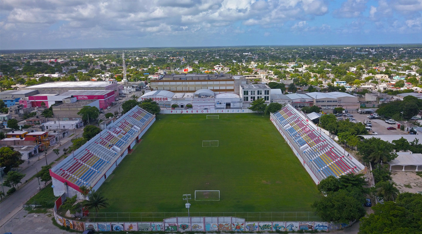 El estadio Cancún 86 se encuentra ubicado en la prolongación Av. Tulum muy cerca del centro de la ciudad de Cancún. Fue construido en la administración municipal 1984 – 1987 siendo así la casa de los Pioneros de Cancún.
